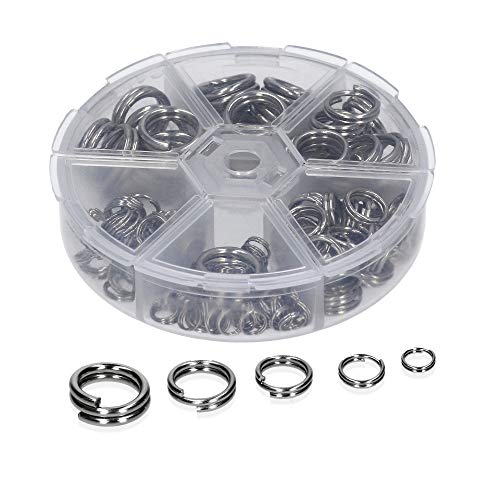 MEHRERE GRÖßEN AUF EINEN SCHLAG: Das Zite Fishing Springring-Set umfasst insgesamt 150 Split-Ringe in 5 verschiedenen Größen. Damit hat man mit diesem Sortiment immer eine passende Auswahl unter seinem Angelzubehör.