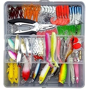 My-Fishing-World 142 pcs Köderbox gemischte Raubfischköder, Sprengring Zange,Wobbler,Popper,Gummifische, Blinker und…