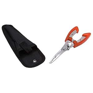 WINOMO Angelzange Edelstahl Angelgeräte Flechtschneider Split Ringzange Salzwasser Haken Entferner Fischhalter (Schwarz)