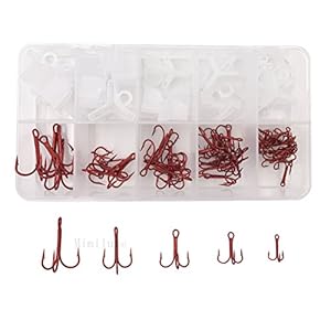 Milepet Klassische Drillingshaken-Set, Hartstahl, Standardstärke, Angelhaken mit Angelausrüstungsbox, 2#, 4#, 6#, 8#, 10…