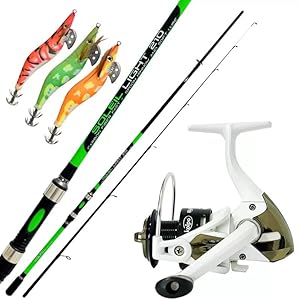 Combo Angeln Kolpo Tintenfisch und Tintenfisch Boot, Soleil Light 2,40 m 0,5/8 g + Rolle Solaris 3000 + 3 Totanare Creed…