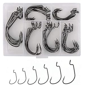 Bright starl 60 Stück versetzte Wurmhaken aus Karbonstahl mit breiter Lücke, Köderhaken mit Kunststoffbox #1-5/0