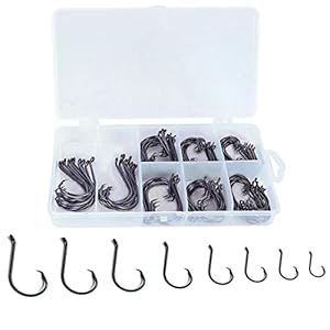 Rainmae 150 Stück/Box Kreis-Angelhaken, 2 x starke, personalisierte Offset-Sport-Kreis-Haken, schwarzer Karbonstahl, 8…