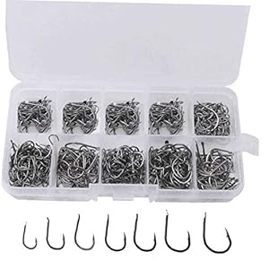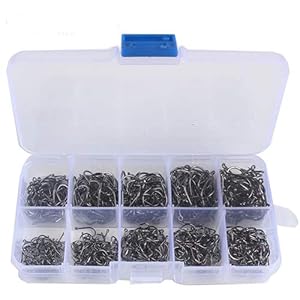 Yoyakie Angelhaken Barbed Bait High Carbon Stahl 10 Größen Kunststoff-Box Für Süßwasser Meer 500pcs