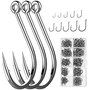tzoxal 600 Stück Premium Angelhaken aus Kohlenstoffstahl mit 10 Größen, tragbare Kunststoff-Box Starker scharfer…