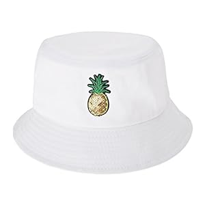 Zlyc Anglerhut, modisch, mit Stickerei, Sommerhut, für Damen und Herren Gr. Einheitsgröße, Ananasweiß