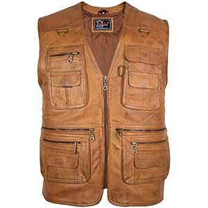 MDM Herren Lederweste, Freizeitweste, Jagdweste, Anglerweste aus weichem Lamm Nappa Leder