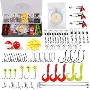 SHADDOCK 110-teiliges Angelköder-Set, Angelzubehör-Set enthält Stahldrahtvorfächer, Angelschnur, Schwimmspender, harte…