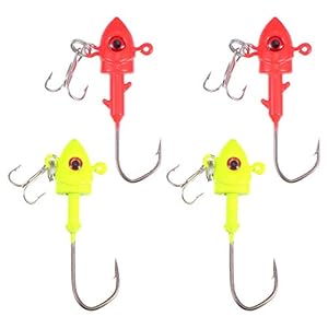 Pwsap 40Stück Jighaken mit Round Jighead, Jigköpfe für Gummifische zum Raubfishangeln, mit 10Stück Gummifische, Bleikopf…