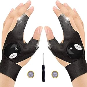 GUOSHUFANG LED Fingerlos Angelhandschuhe, 1 Paar Outdoor Taschenlampe Handschuhe Schwarz, Arbeitshandschuhe mit Licht…