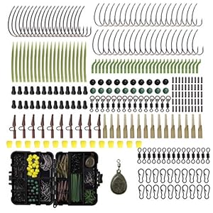 Shaddock 296 TLG Karpfen Angelzubehör Set mit Wirbel Perlen Karpfenhaken Anti-Tangle-Ärmeln Clips Hühneraugen Aligner…