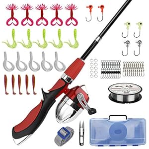 LINGSFIRE Angelrolle und Stange Combos Full Kit, Angel Set für Kinder, 60 PCS Angelset Kinder, Teleskop Angelrute und…