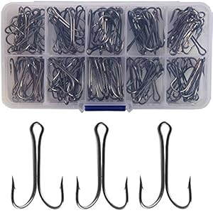 100 Stück klassische Doppel-Angelhaken, langlebiger offener Schaft, Doppelfroschhaken, scharfer Angelhaken, extra stark…